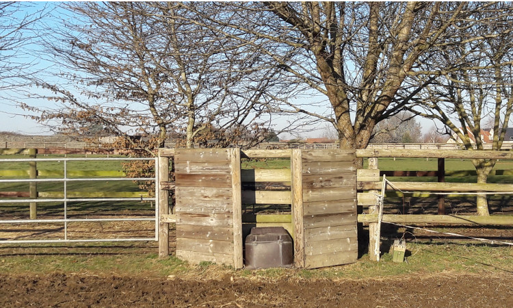 Chaque paddock possède un abri avec copeaux de bois et un abreuvoir automatique antigel.