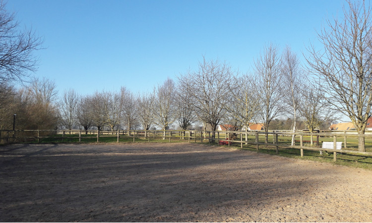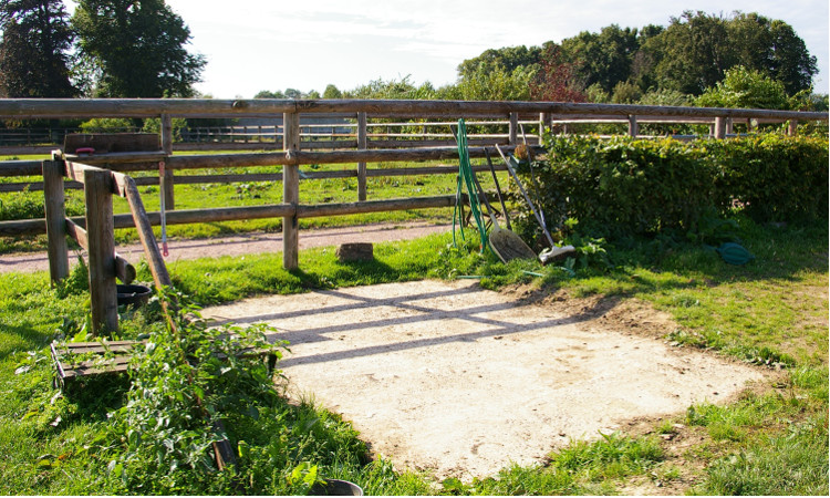 Un paddock de travail avec une piste en sable et un rond de longe.